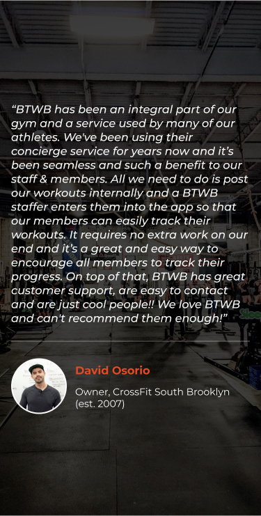 “I can easily access the workouts I follow and log my times and weights. The progression measurements keep you aware of your strengths/weaknesses. I highly recommend any athlete to BTWB to track all of their workouts.”